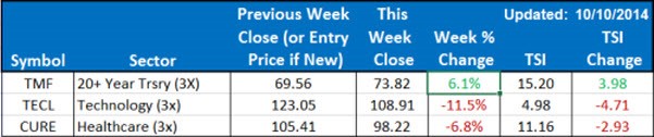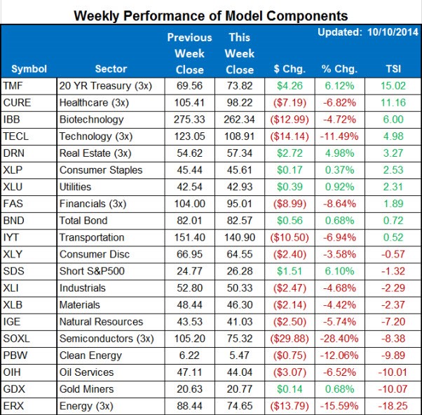 Here is a summary of the weekly performance of all the ETFs that the strategy monitors: