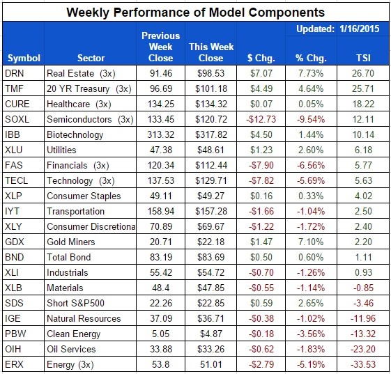 Here is a summary of the weekly performance of all the ETFs that the strategy monitors: