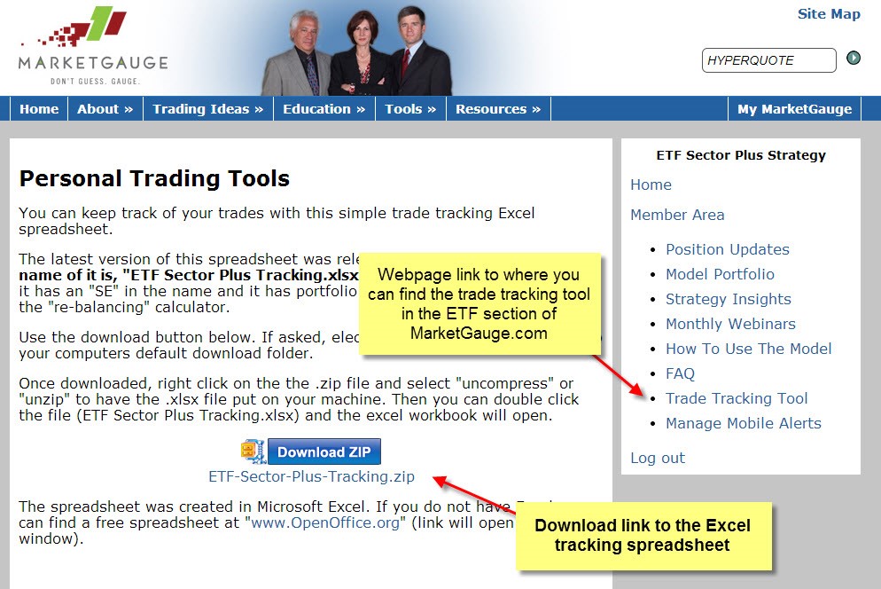 The Trade Tracking tool can be downloaded from the marketgauge.com website once you log into the ETF Sector Plus section. It is a Microsoft Excel file. We have a similar version for Open Office, a free spreadsheet program.