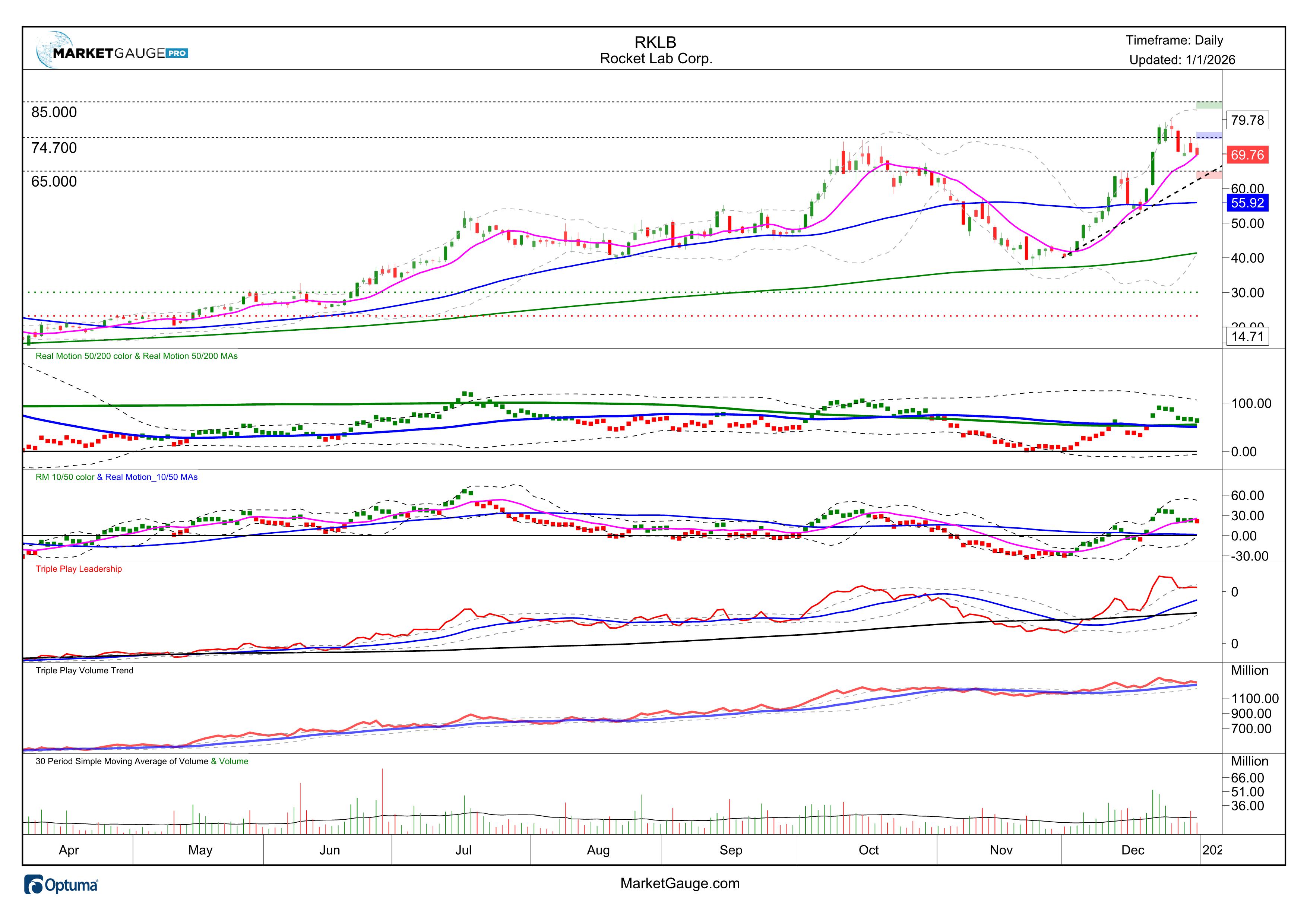 Key support under the 10-DMA is the 12/12 swing high at 65. This is a wide stop for sizing up a potential trade before the low of the flag has been determined.